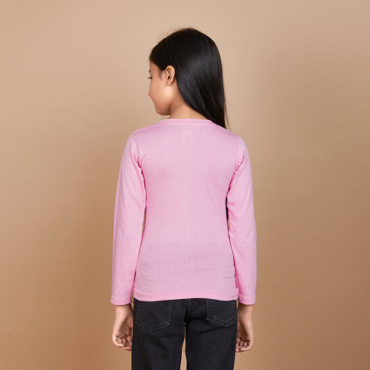 Girl's Solid Designer Print Pink Full Sleeve T-Shirt