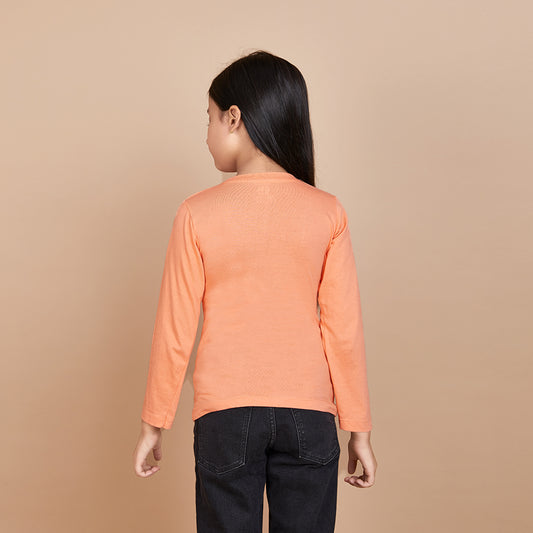Girl's Solid Designer Print Orange Full Sleeve T-Shirt