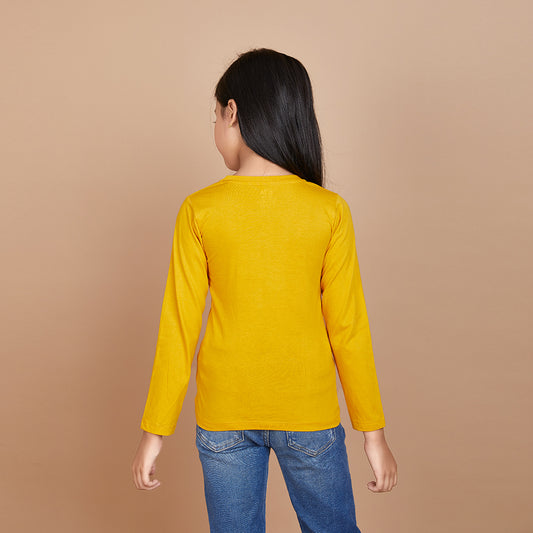 Girl's Solid Designer Print Yellow Full Sleeve T-Shirt