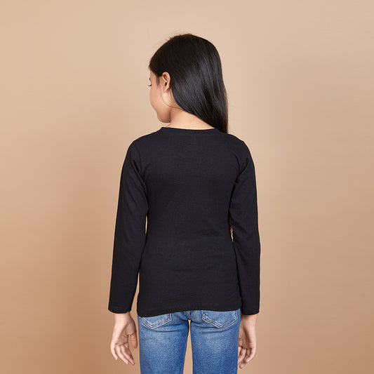 Girl's Solid Colour Designer Print Full Sleeve T-Shirt