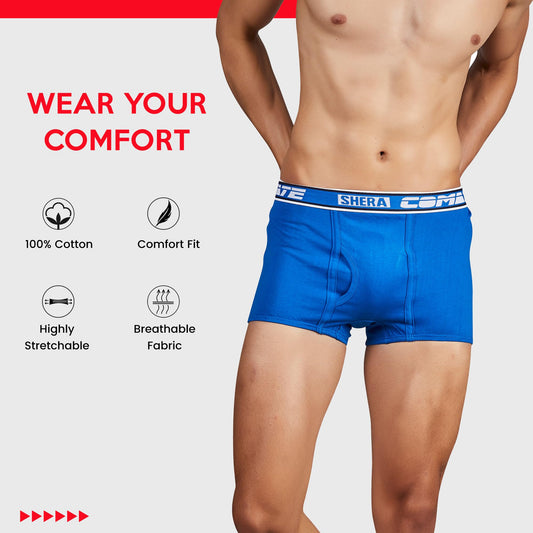 Shera Men's Cotton Lycra Trunks with Airflow Fabric, FitCraft Sizing